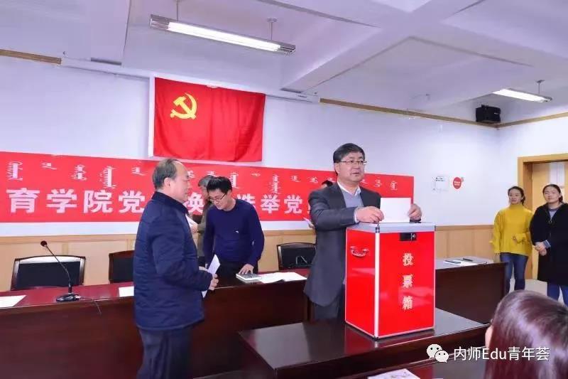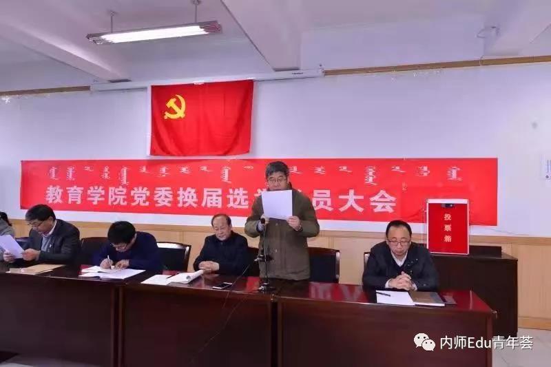 2018年11月29日下午,教育学院党委换届选举党员大会于赛罕校区文史楼一号会议室隆重举行,内蒙古师范大学组织部干部科科长陈宏研同志、教育学院党委书记铁木尔同志、教育学院院长米俊魁同志、教育学院党委副书记兼副院长王利同志、教育学院副院长何士同志、教育学院副院长边琦同志出席会议,教育学院全体教工党员和学生正式党员90人参加大会,学生预备党员30人列席大会,王利同志主持选举大会。