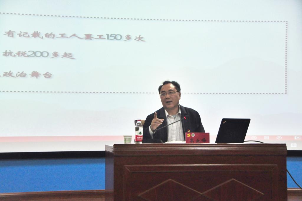 为更好的总结历史经验、把握时代规律、不忘初心、坚定信心、提高面向未来的历史主动和历史自觉。4月29日下午15:30,校党委副书记高云峰在学生事务中心一楼学术报告厅为教育学院党委、文学院党委、外国语学院党委和心理学院党总支师生党员作党史学习教育专题讲座,本次讲座由教育学院党委书记铁木尔和外国语学院党委书记李文胜主持。