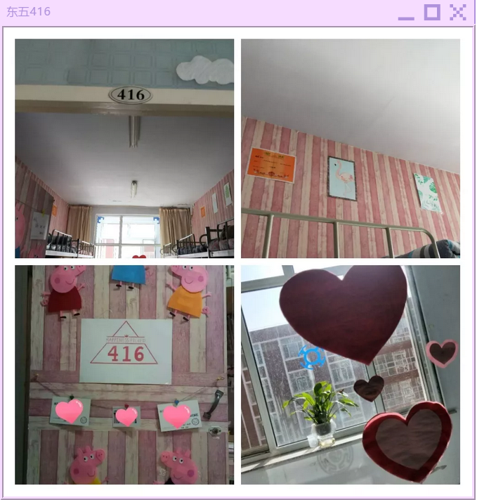 我院学生本着“自己动手、勤俭节约、经久实用”的原则,墙壁、门窗装饰简约大方、创意十足,充分展现了当代大学生的创造力。