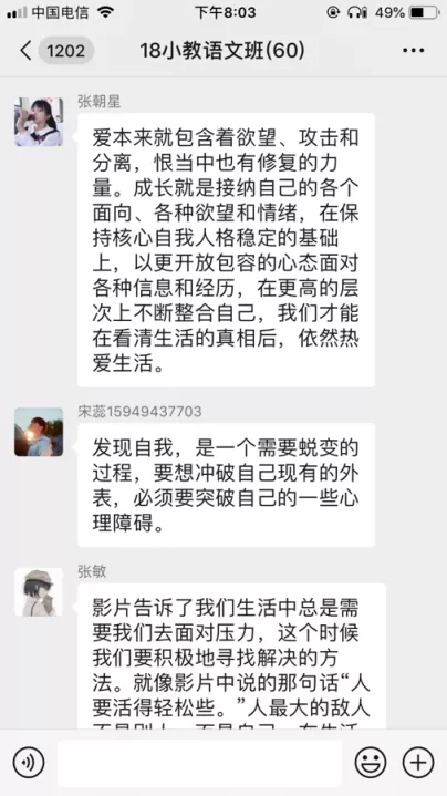 习近平总书记明确强调“动员各方面力量,全面加强心理疏导工作”,通过此次活动,同学们不仅在影片中舒缓了压力,缓解了由疫情带来的紧张情绪,还在交流讨论中敞开心扉,畅所欲言,提高了心理调控能力和防疫能力,为自己构筑了一道坚实且牢固的抗疫心理防线。