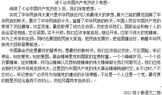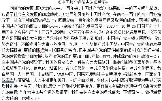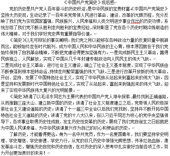 为深入开展党史学习教育,提升青年的思想素养,我院青马班和全院青年进行了“学党史、强信念、跟党走”学习教育。通过学习研读党史书籍并作心得感悟进一步了解了中国共产党发展、活动、斗争的历程,将学习和传承党史内化于心,外化于行。