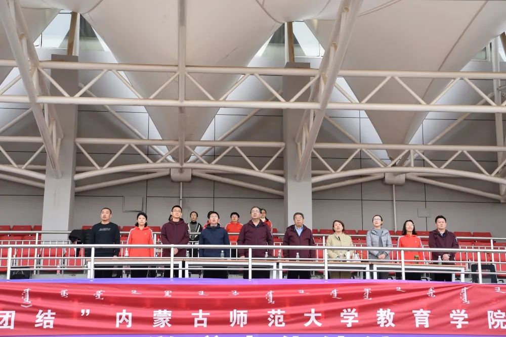 我院师生共同唱响内蒙古师范大学校歌,教育学院第二届师生运动会在嘹亮的歌声中落下帷幕。