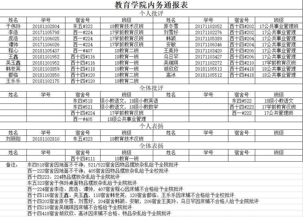 教育学院内务通报表