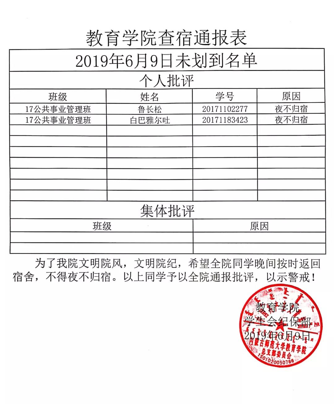 教育学院查宿通报表