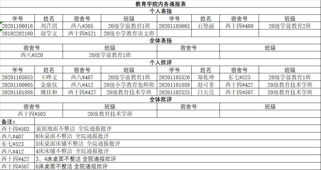 教育学院11月18日内务通报