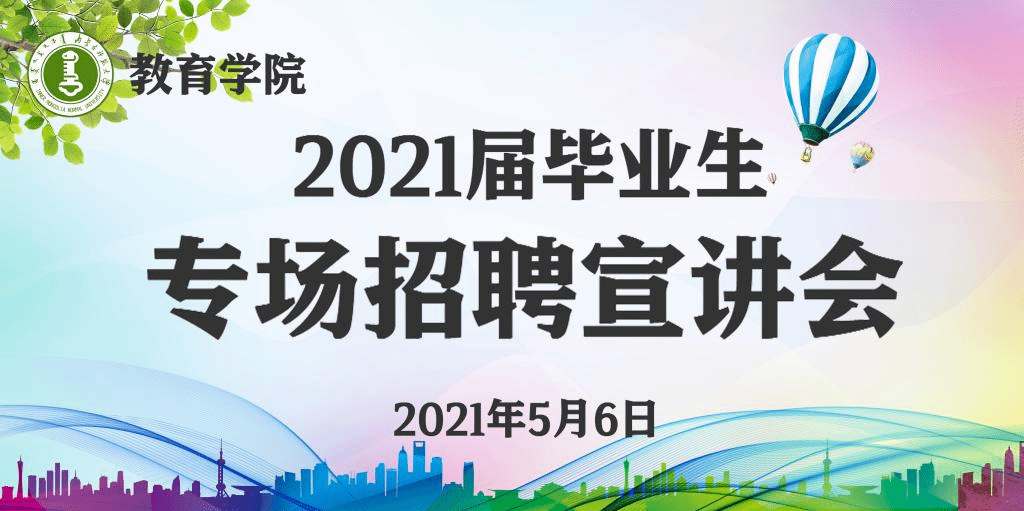 为帮助2021届毕业生了解当今就业状况,缓解就业压力,增强就业信心,5月6日晚19:00,教育学院在图书馆二楼报告厅举办教育学院2021届毕业生专场招聘会。参加此次招聘会的机构有世纪众仁教育咨询服务有限公司、新方舟培训学校有限公司、学益教育培训中心、蓝莓果教育、学睿高思教育、学风教育咨询服务有限公司、爱特教育、圃泽教育、长远教育、三色堇、博雅托管、金锐教育四楼小豆伴、英华学校、学大校区、景文教育科技有限公司、睿丁英语、国际教育。