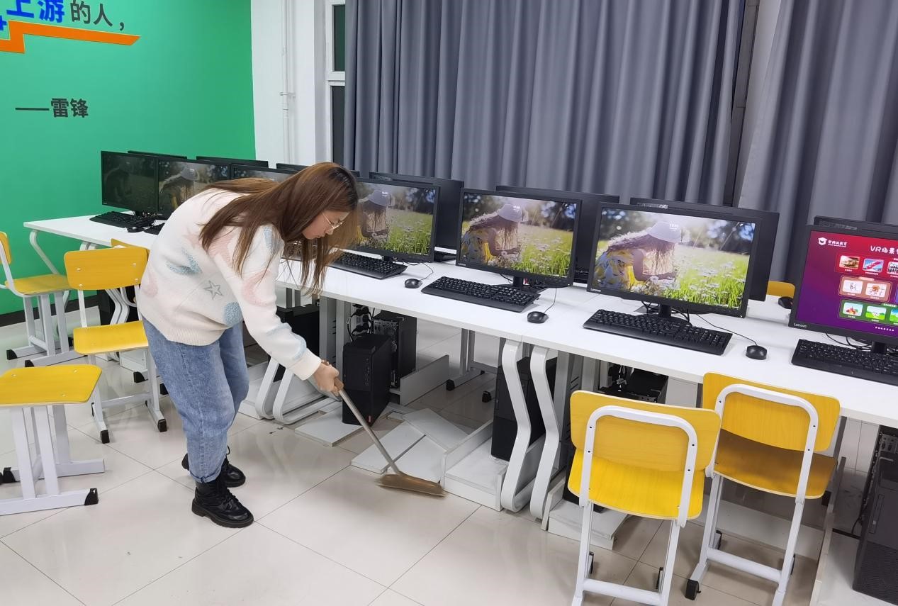 以劳树德、以劳增智、以劳强体、以劳育美。劳动教育是中国特色社会主义教育制度的重要内容,可以树德、增智、强体、育美,具有综合育人价值,是全面培养体系的重要组成部分。我院本学期组织教育技术专业2020级、2021级本科生对科技楼机房进行清扫劳动教育实践活动。