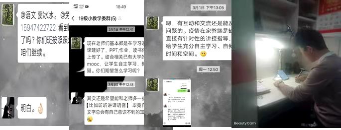 2020年春季学期的开学注定将记入学校史册,教育学院在学校党委疫情防控的精神下,认真落实教务处停课不停学要求,学院本学期开设的近百门课程的授课教师在近一个月里,进行课程设计、资源准备、平台选择、网络搭建等,随着39日的临近,网络课程也将正式启用。俗语讲是骡子是马,拉出来遛遛!”,本周老师们都开始了进行测试,同时完成课程的第一课。学院以学生为中心的理念,对学生学习进行跟踪、访谈,以此来保障网络教学质量。下面听听他们对学习、对教师、对自己有些什么想说的......