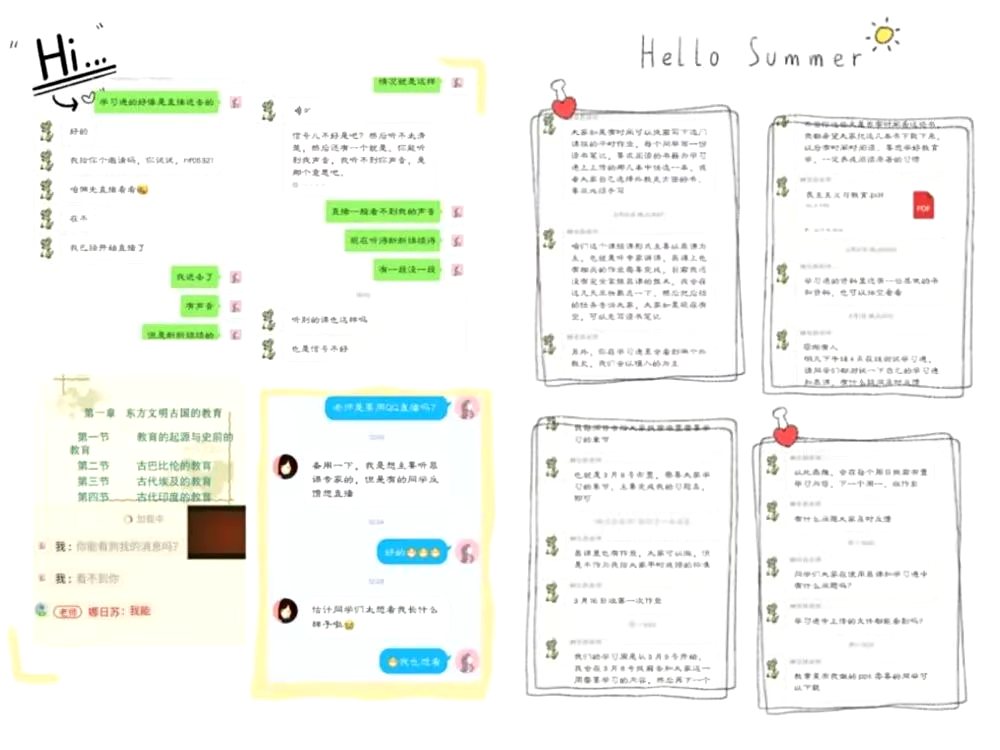 2020年春季学期的“开学”注定将记入学校史册,教育学院在学校党委疫情防控的精神下,认真落实教务处“停课不停学”要求,学院本学期开设的近百门课程的授课教师在近一个月里,进行课程设计、资源准备、平台选择、网络搭建等,随着3月9日的临近,网络课程也将正式启用。俗语讲“是骡子是马,拉出来遛遛!”,本周老师们都开始了进行测试,同时完成课程的“第一课”。学院以“学生为中心”的理念,对学生学习进行跟踪、访谈,以此来保障网络教学质量。下面听听他们对学习、对教师、对自己有些什么想说的......