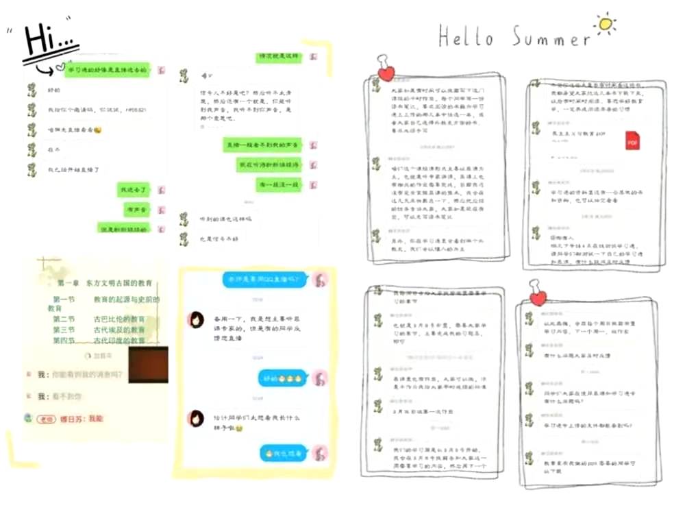 在此期间,您充分利用网络化平台,精准掌握了我们的基础信息,精准掌握各地区同学的分布情况,精准掌握我们假期的具体学习状态,精准掌握我们的身体健康状况等,做到“基础信息全摸清、动态信息全掌握、关注学生全覆盖、工作措施全到位”。老师还非常贴心的怕我们不会使用新的网络教学平台,在课程直播的过程中将这些软件的操作步骤以及流程放到自己的课件之中,这也温暖了我们学生的心。让我们看到了老师的细腻心思,老师们果然是以学生为本,一心一意地为学生服务,让我们向这些最可爱的人儿致敬!