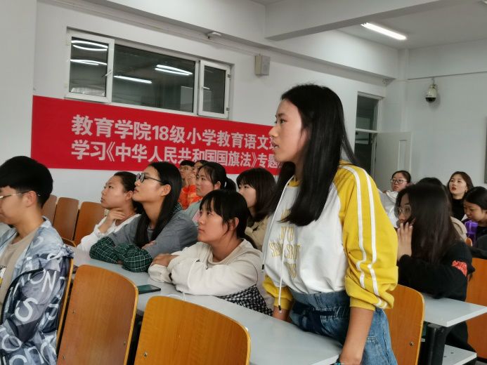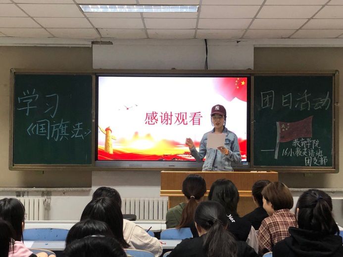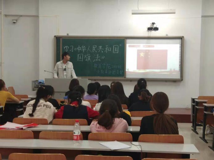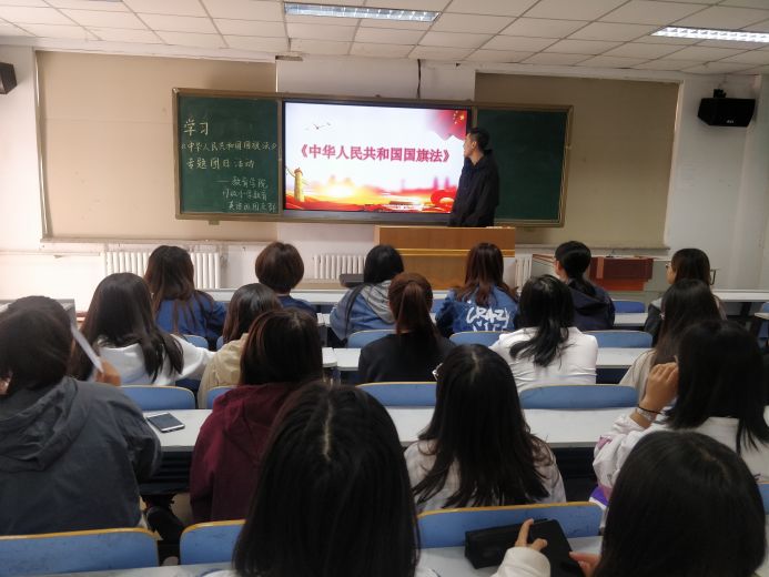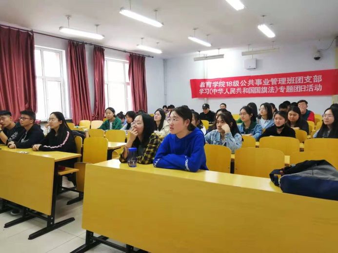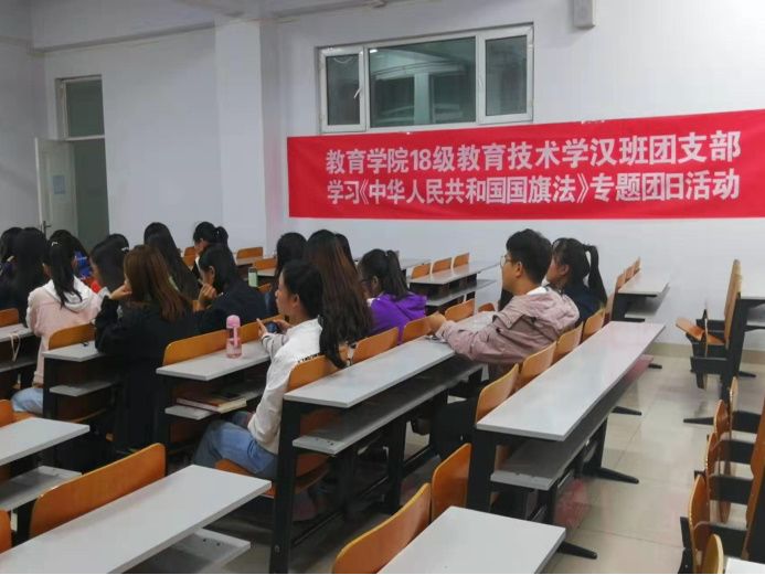 为迎接新中国成立70周年,纪念五四运动100周年,提升我院学生的家国情怀和时代精神,增强我院学生的责任感和使命感,教育学院各团支部特于2019年9月19日开展学习《中华人民共和国国旗法》专题团日活动。