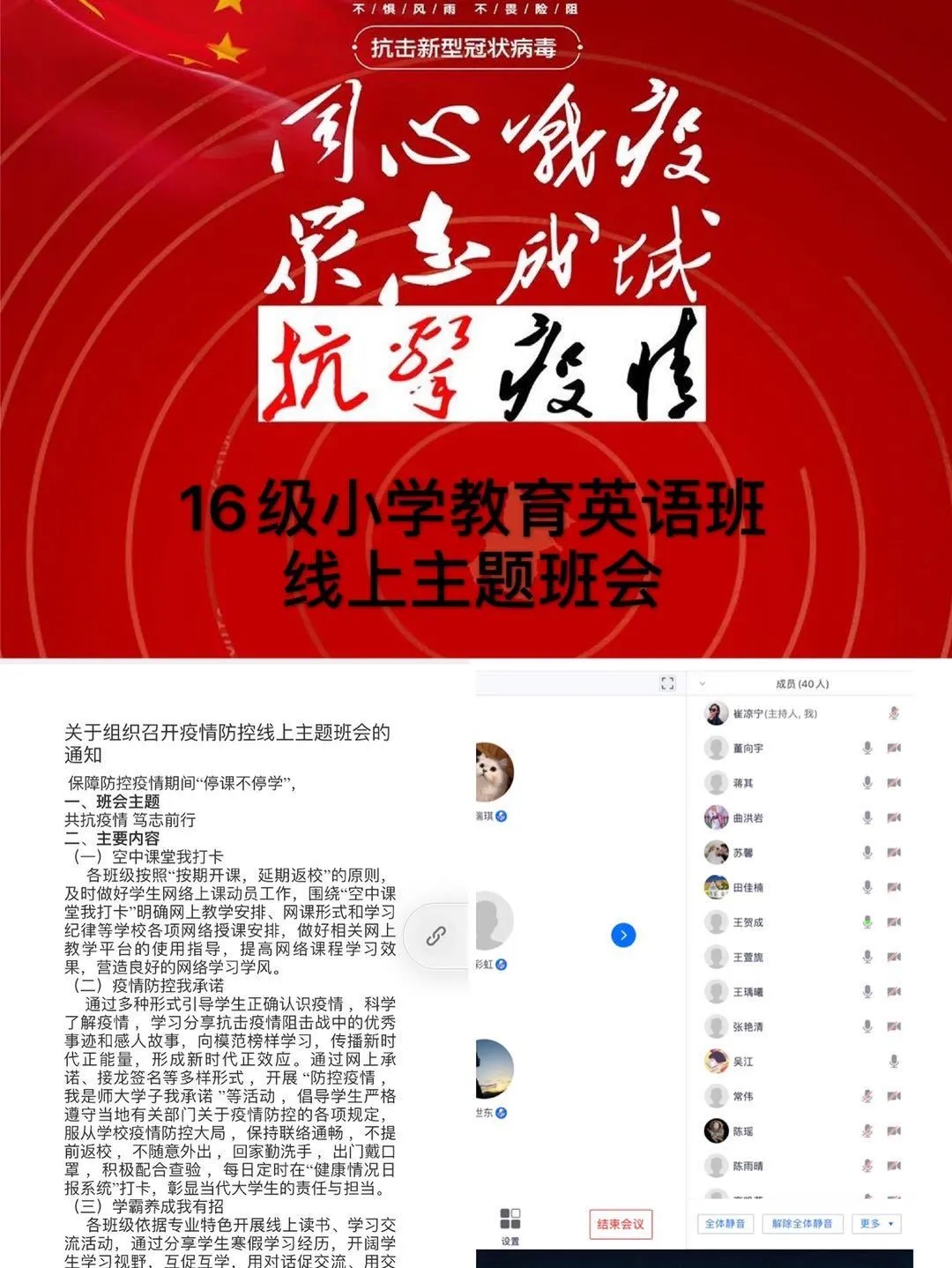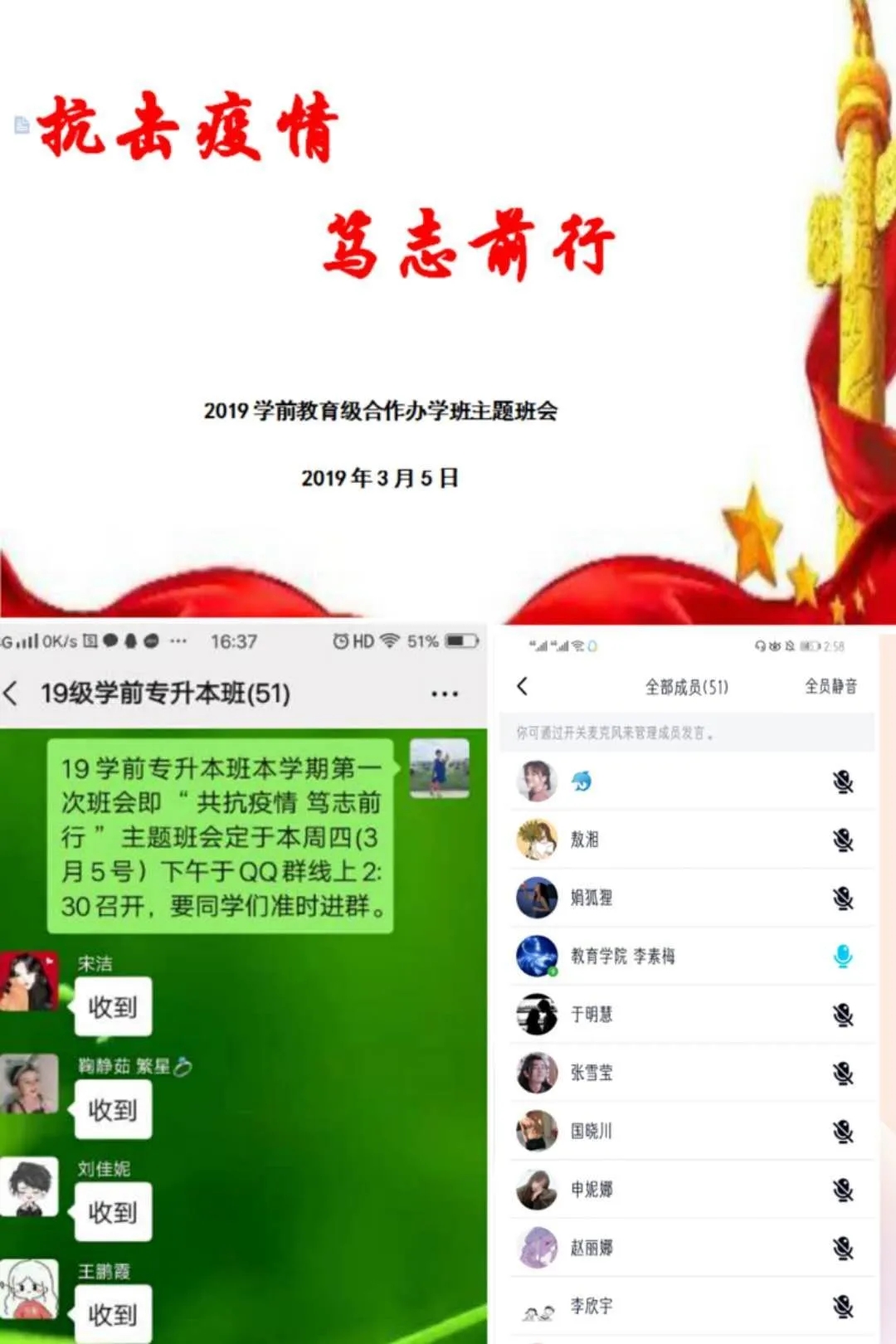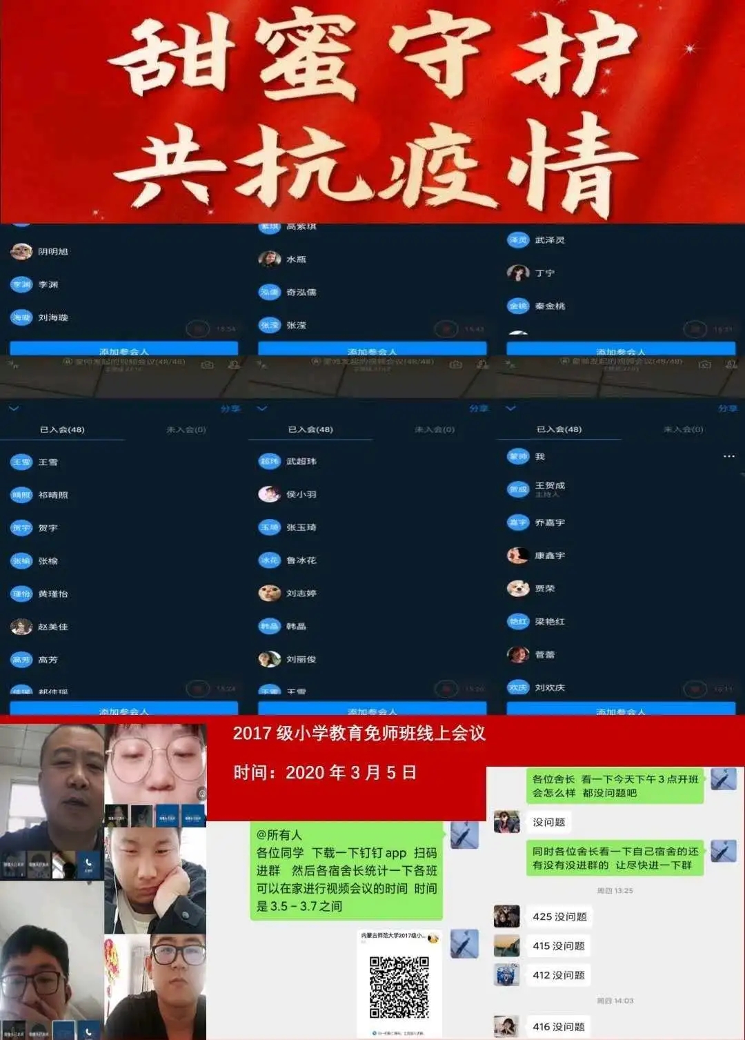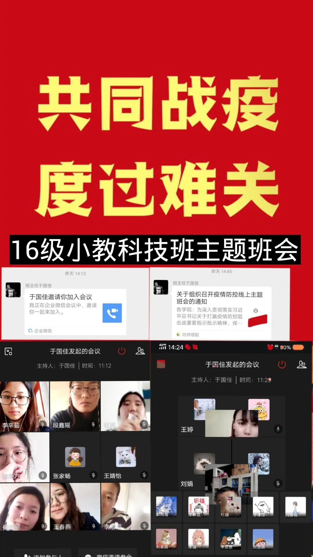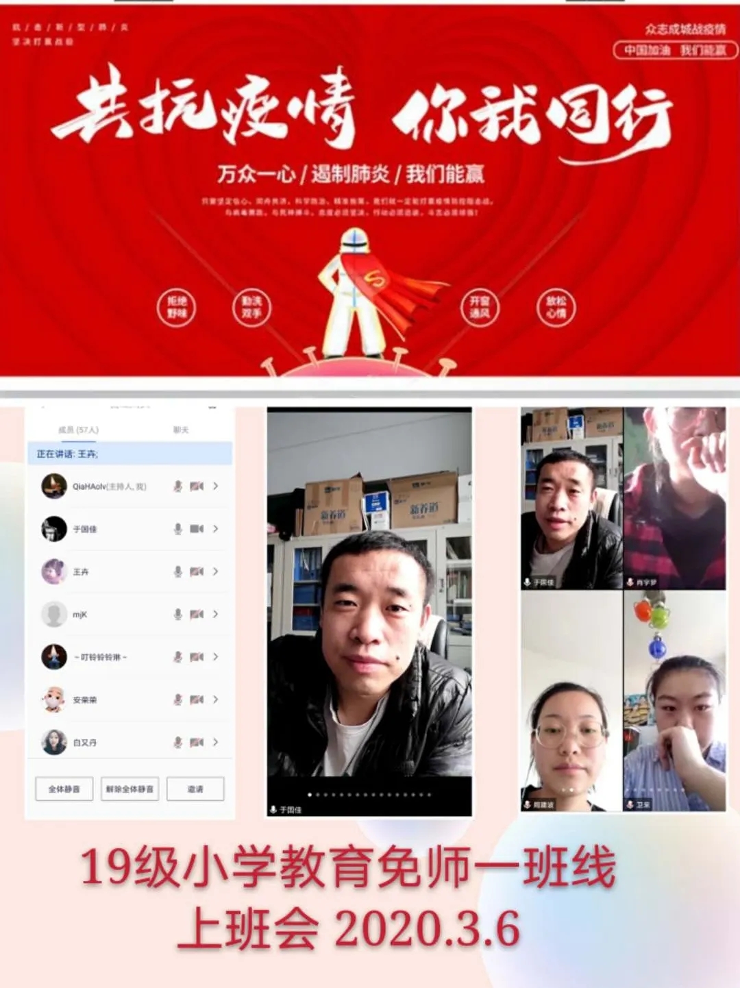为深入贯彻落实习近平总书记关于打赢疫情防控阻击战重要指示批示精神,保障防控疫情期间“停课不停学”,充分发挥网络育人功能,根据自治区和学校有关工作部署,教育学院各班级组织召开“共抗疫情,笃志前行”为主题的疫情防控线上班会。