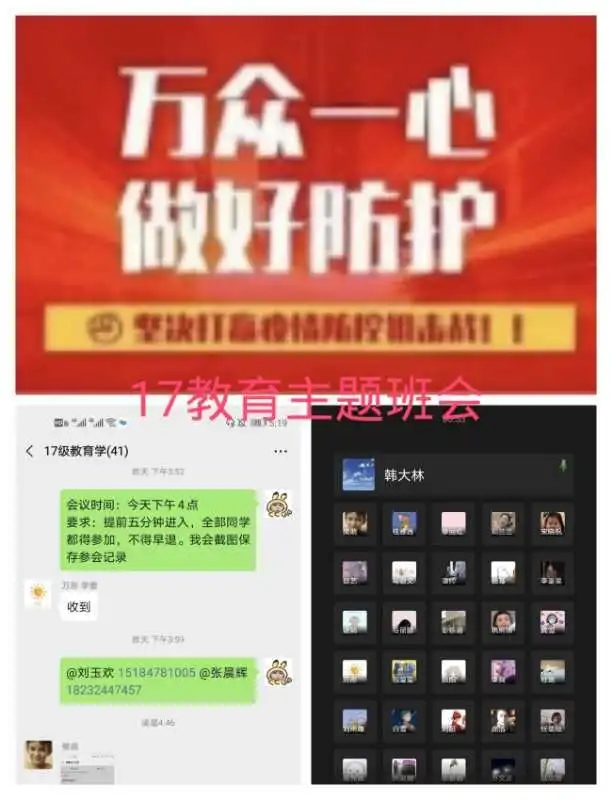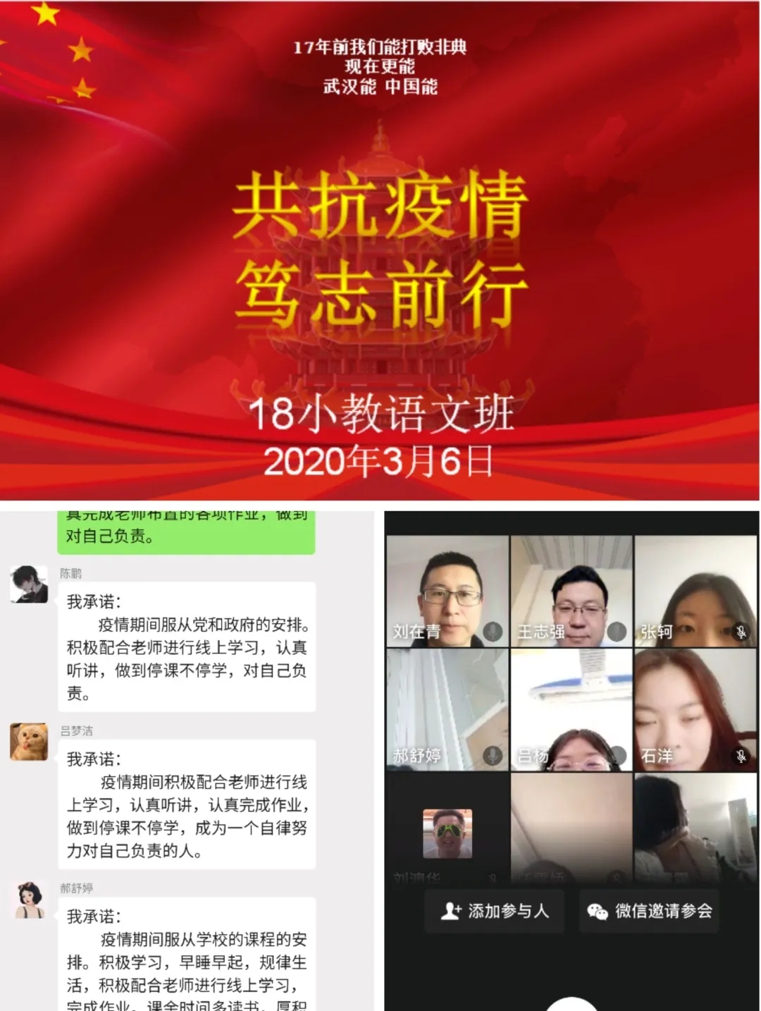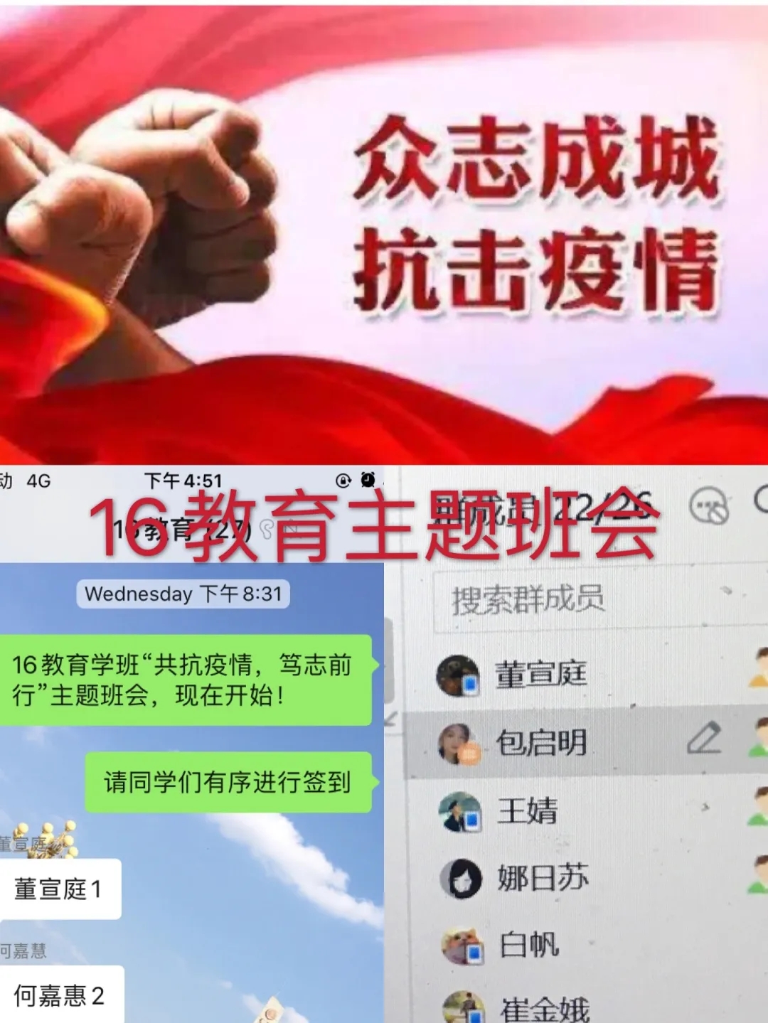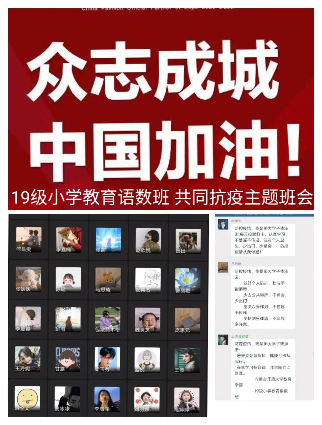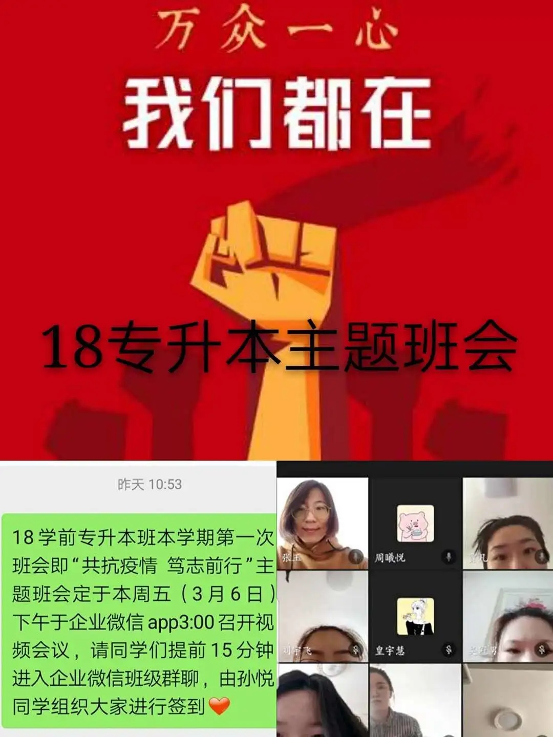为深入贯彻落实习近平总书记关于打赢疫情防控阻击战重要指示批示精神,保障防控疫情期间“停课不停学”,充分发挥网络育人功能,根据自治区和学校有关工作部署,教育学院各班级组织召开“共抗疫情,笃志前行”为主题的疫情防控线上班会。