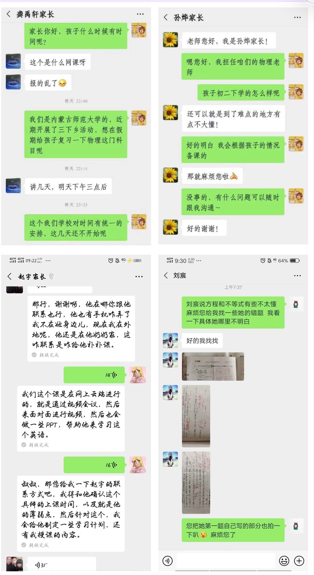 青春是用来奋斗的,风华正茂的当代大学生在实践中感受生活、实现价值、放飞青春。作为青年志愿者,教育学院“三下乡”实践活动中教学实施组的志愿者们与学生及其家长进行交流,了解到每一位学生的学习需求,因材施教,进行教学安排。预祝志愿者们顺利展开教学工作,与学生实现良好的教学关系。