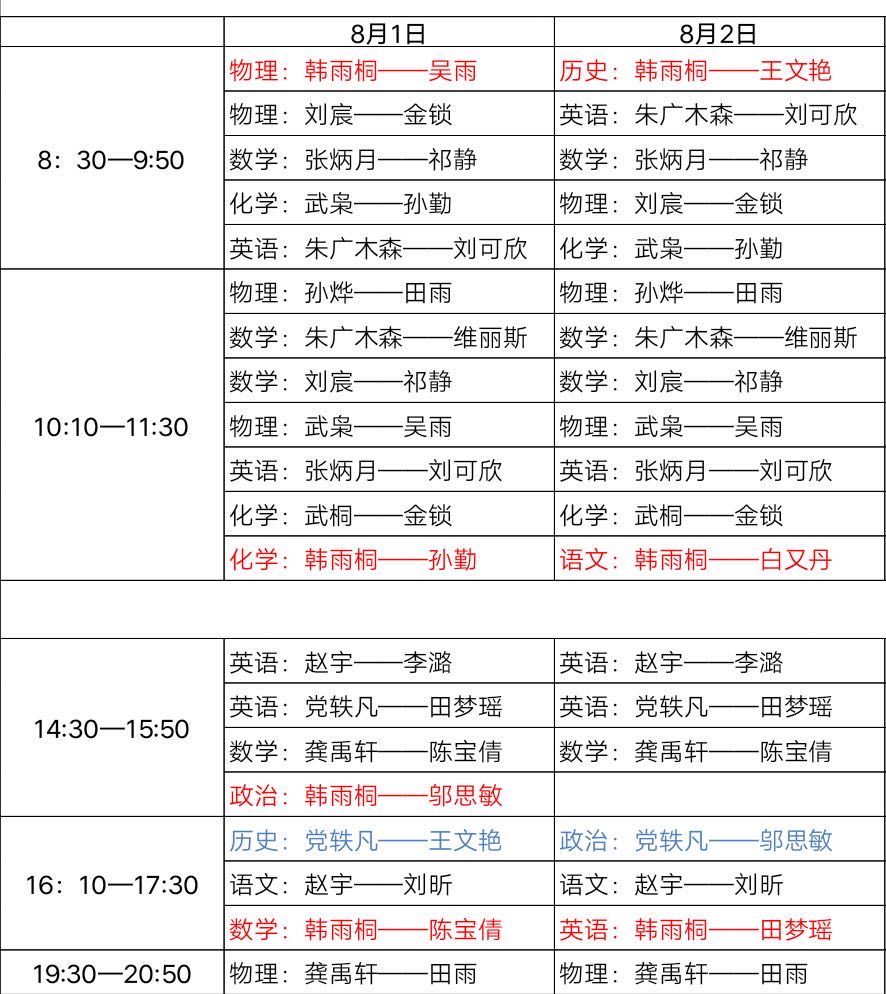 根据学生及其家长反馈的信息,各志愿者确定了各个科目的辅导时间并排了课程表。为了能够更加规范、有效、高质量的完成教学工作,教学实施组制定了具体的教学要求,从志愿者基本礼仪、课堂规范及网络方面规范了志愿者后期的教学实施过程,并安排部署了教学过程中的具体工作,确保后续教学工作顺利进行。