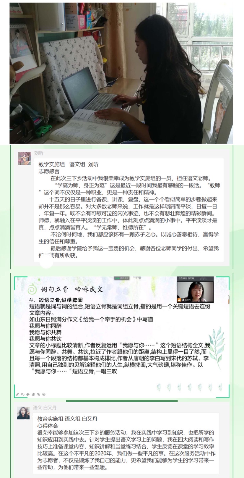 教育学院2020年暑期云端三下乡教学实施组志愿者心得体会