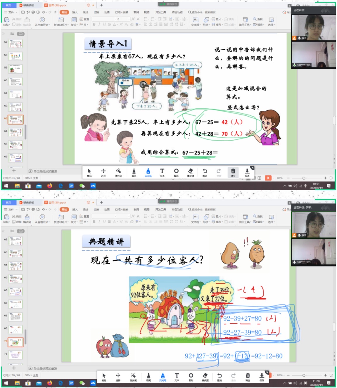 教育学院“三下乡”志愿实践活动于八月份开展至今,已历时19日,大部分工作已接近收尾,兴趣组的志愿者们仍按照教学计划按部就班地为学生们进行线上授课。志愿者们为学生讲解包括加减混合运算,英语音标、句式时态、发音规范等知识点,根据几次授课情况,志愿者们进行教学反思,发现学生问题、改进教学方式,师生共同交流成长、互帮互助。