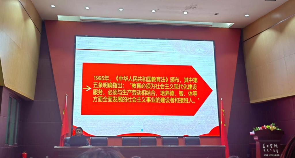 2023年5月22日,教育学院党委副书记兼副院长斯琴满都呼老师在美术学院报告厅为教育学院、美术学院积极分子讲授《习近平总书记关于培养全面发展人才的重要论述》专题党课。本次党课由教育学院学生第三党支部支部书记张玉主持。