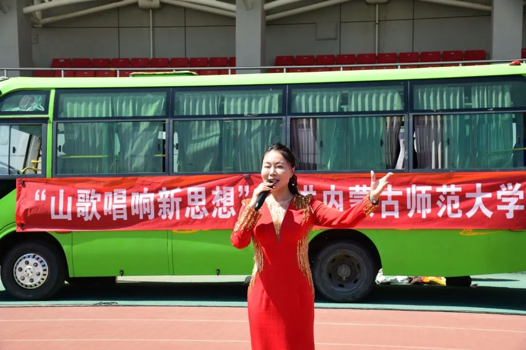 由内蒙古师范大学党委宣传部和和林县党委宣传部共同主办,和林县乌兰牧骑和盛乐经济园区文化站承办,自治区新时代文明实践研究中心和我院协办的“山歌唱响新思想”走进高校活动于8月28日上午在盛乐校区体育场隆重举行。这是我院2023级新生入学教育的重要内容——“开学第一堂思政课”。